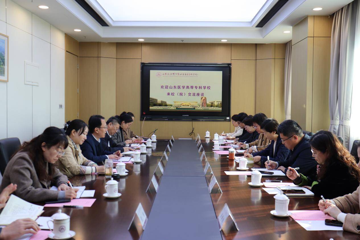 10月22日,山东高等医学专科学校党委委员、副校长孙运粉一行来校(院)调研交流,校(院)党委委员、副校(院)长贾海宁参加座谈交流。