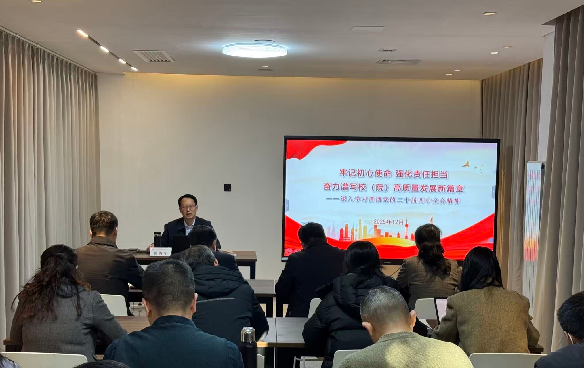 为深入学习贯彻党的二十届四中全会精神,切实把思想和行动统一到党中央决策部署上来,12 月 8 日下午,校(院)党委委员、副校(院)长贾海宁以《牢记初心使命 强化责任担当 奋力谱写校(院)高质量发展新篇章》为题,为学生工作部党支部讲授党的二十届四中全会精神专题党课。