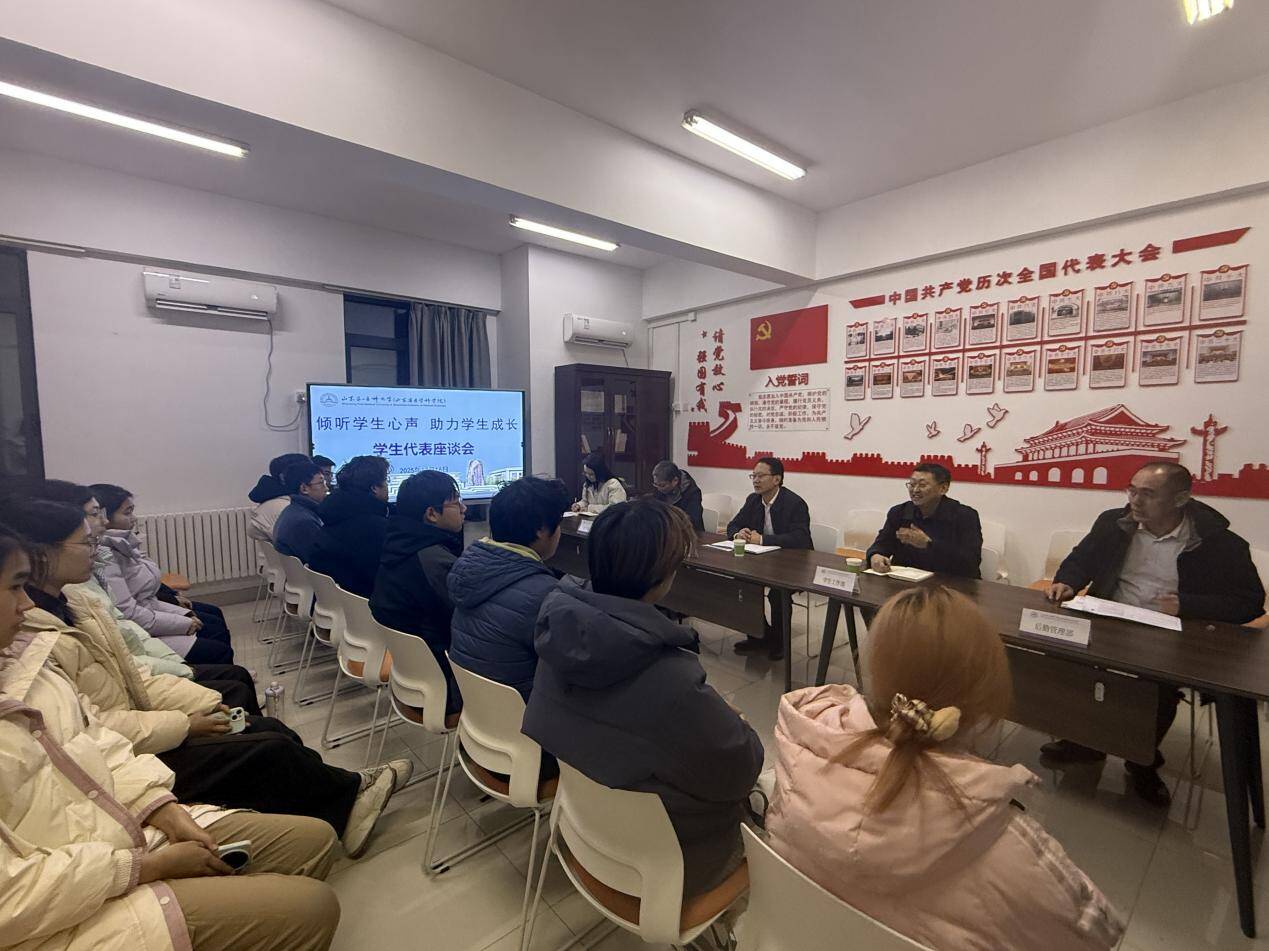 为深入了解学生诉求与思想动态,广泛听取学生心声,汇聚青年智慧,凝聚青春力量,为校(院)高质量发展注入新动能,12月16日,校(院)在济南校区“一站式”学生社区召开学生代表座谈会。校(院)党委委员、副校(院)长贾海宁出席会议并讲话。